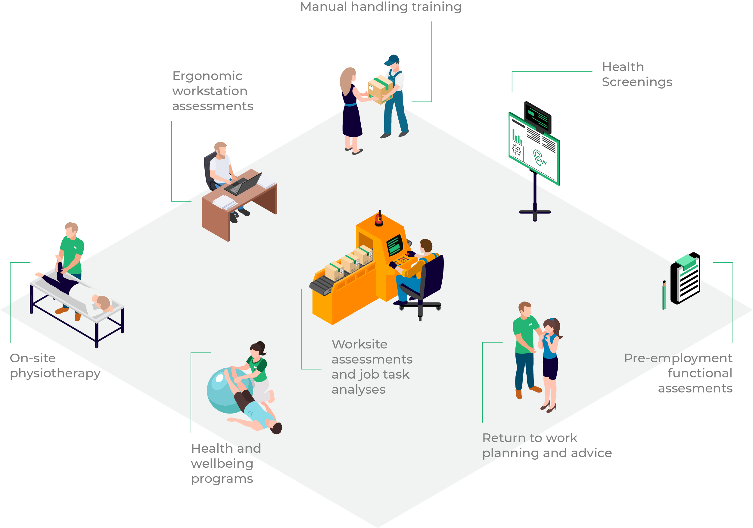 Each service is designed to identify potential hazards and barriers within the workplace. Once identified, recommendations and functional education is provided to ensure that a healthy work environment is achieved, where risk is minimised and productivity is maximised.